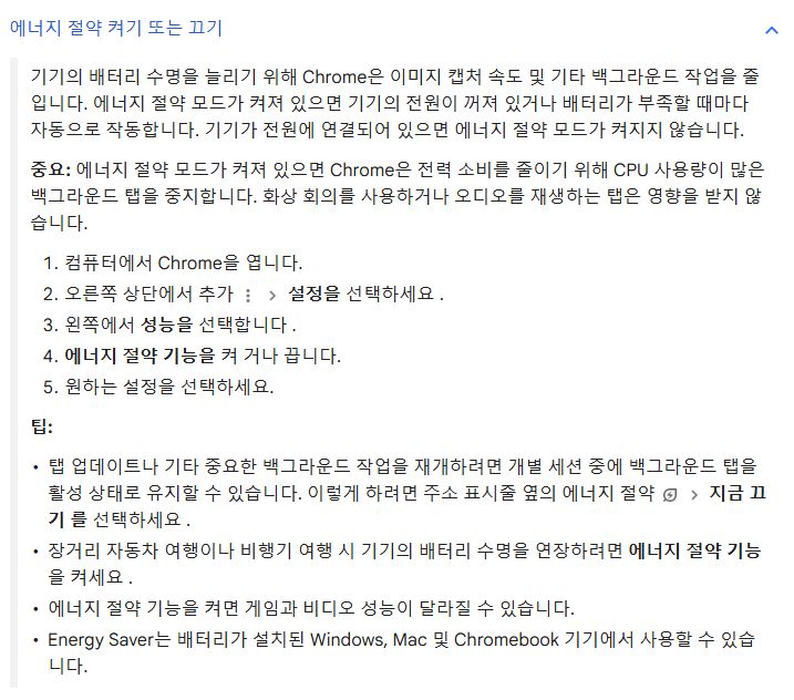 에너지 절약 켜기/끄기 도움말. 이건 데스크탑에서는 안 보인다.