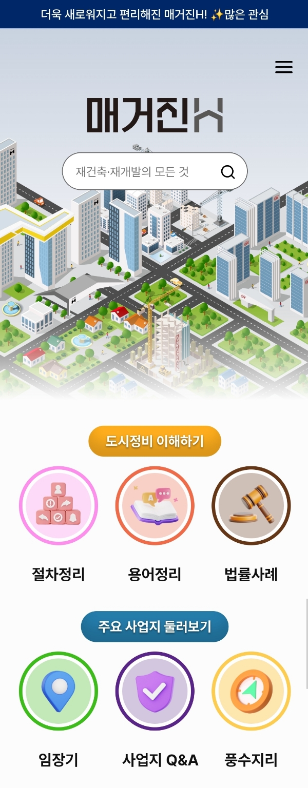 대한민국 건설명가 현대건설이 제공하는 국내 최초 고품격 재건축·재개발 콘텐츠 플랫폼 매거진H. 쉽고 정확한 도시정비 전문 콘텐츠를 제공합니다.