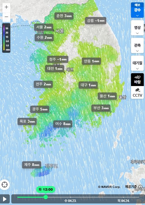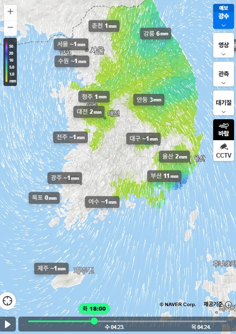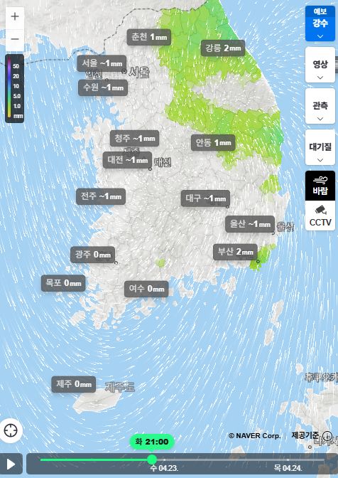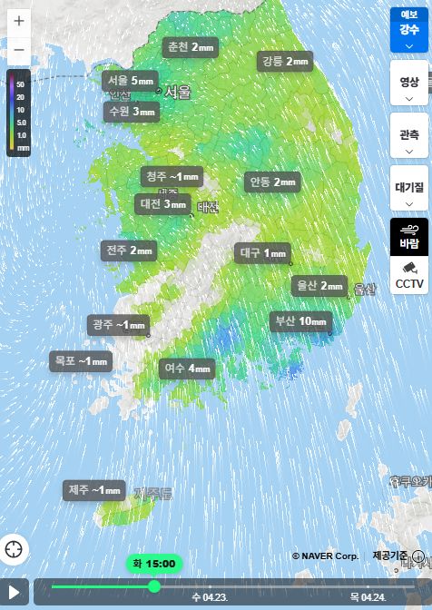 아래 이미지의 출처는 네이버 날씨지도입니다.