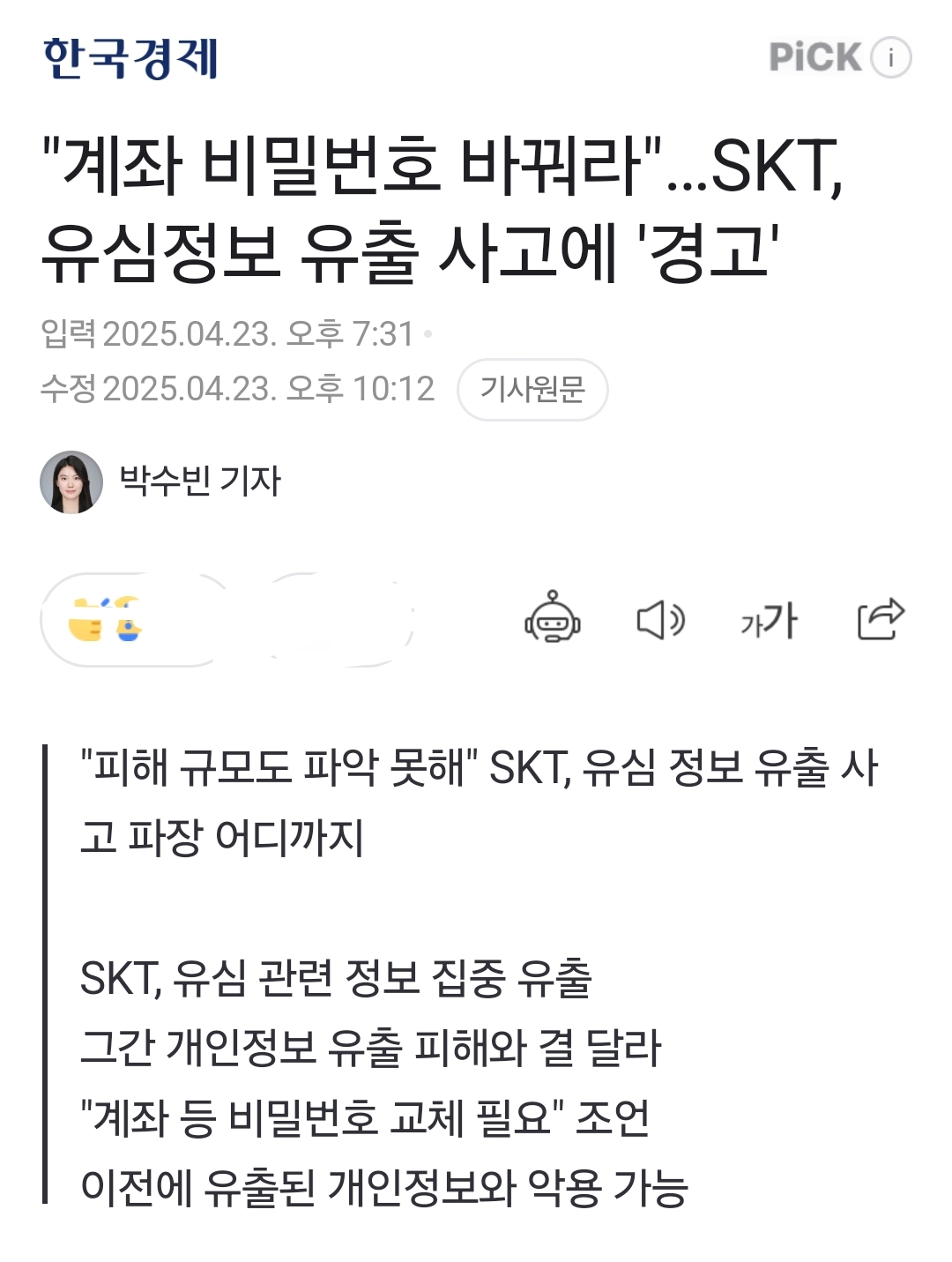 "계좌 비밀번호 바꿔라"…SKT, 유심정보 유출 사고에 '경고'