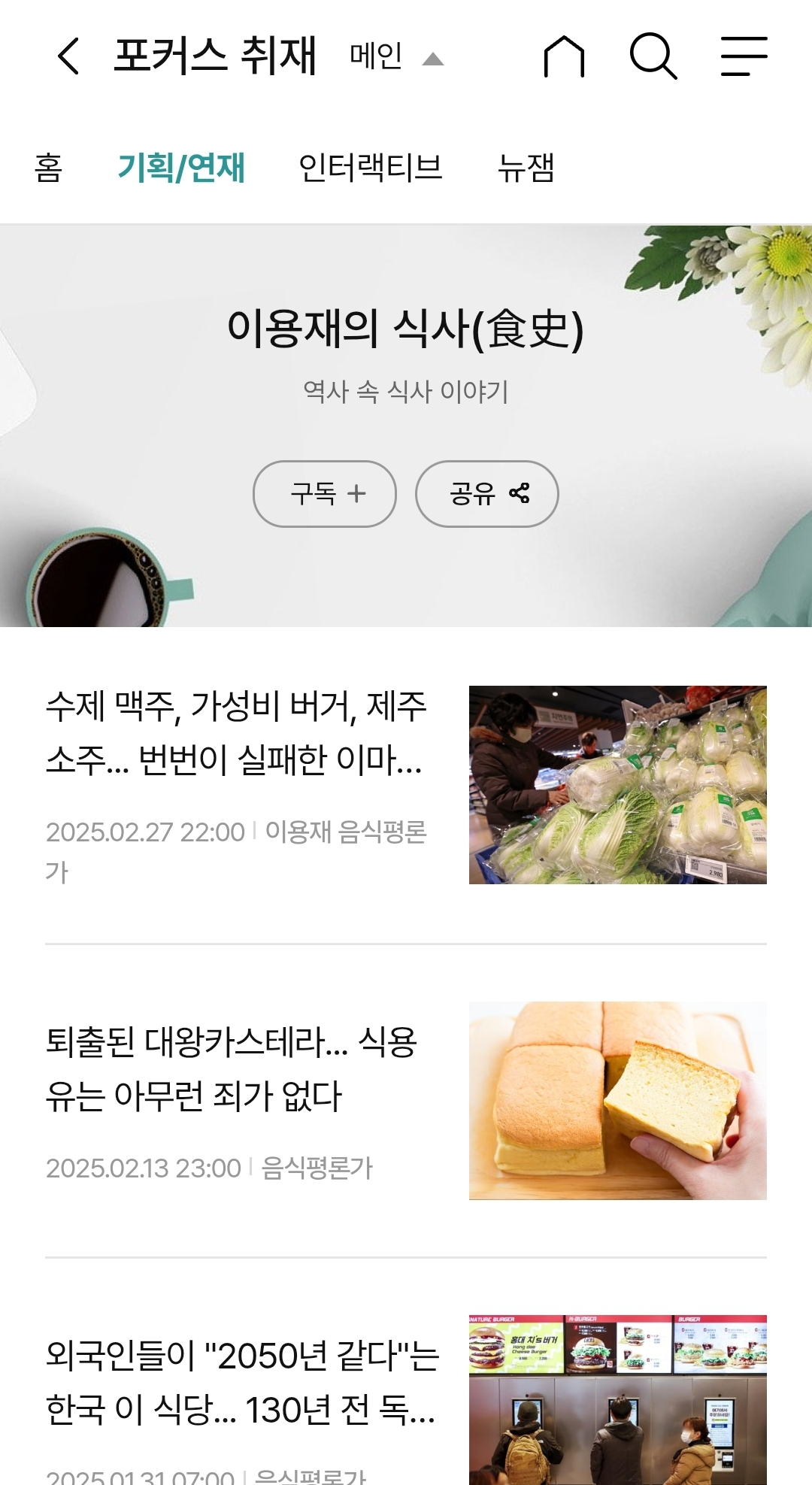 한국일보 : 포커스 취재 > 이용재의 식사(食史)