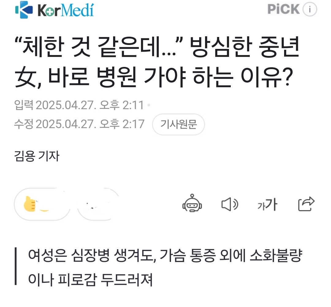 “체한 것 같은데…” 방심한 중년 女, 바로 병원 가야 하는 이유?