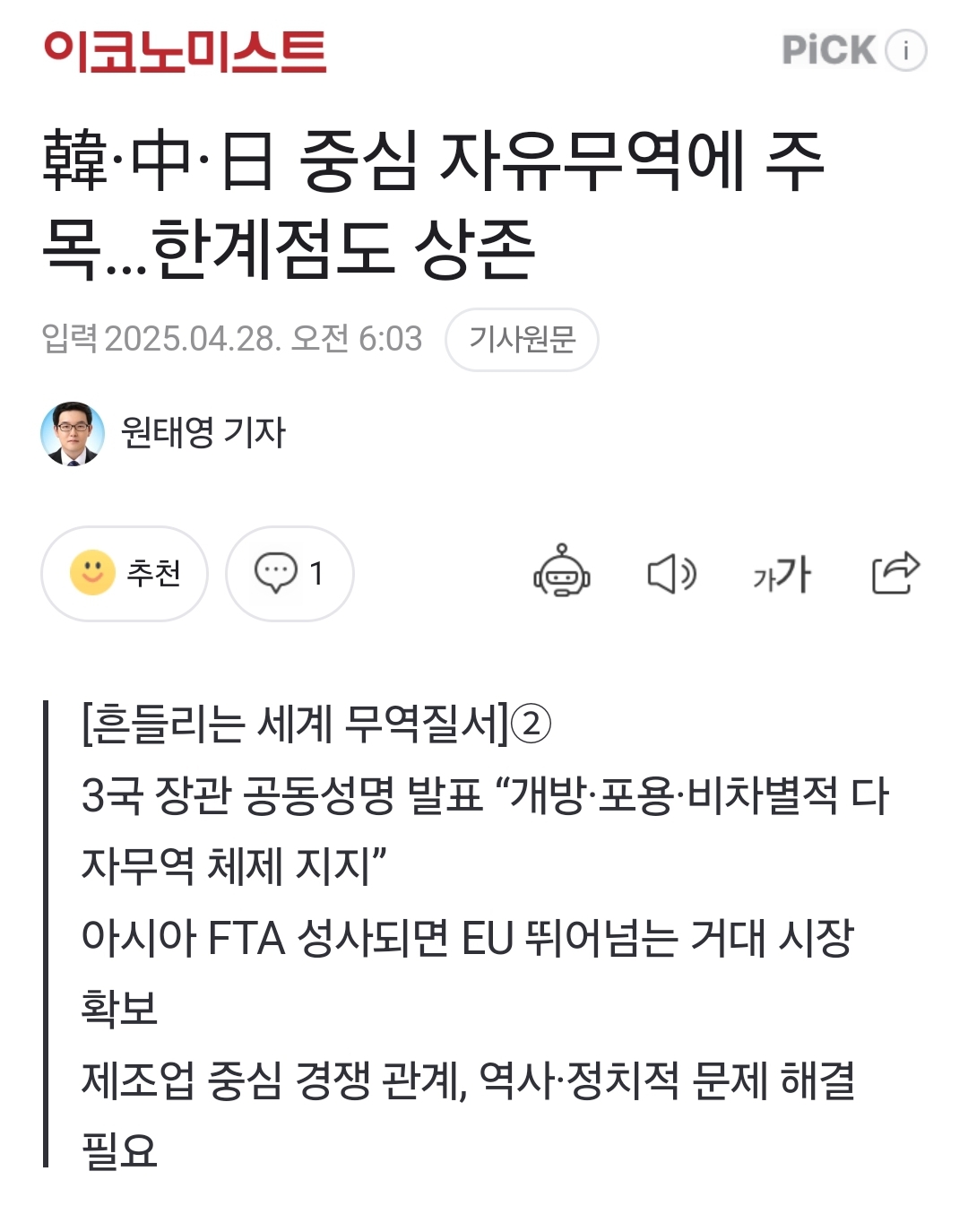 韓·中·日 중심 자유무역에 주목…한계점도 상존
