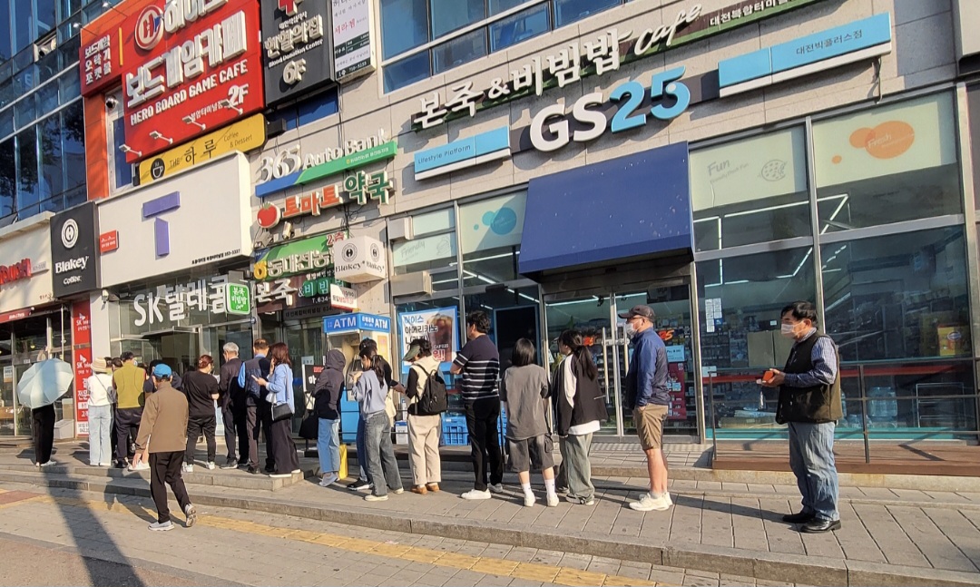 오프라인 대리점에 직접 줄서는 사람들