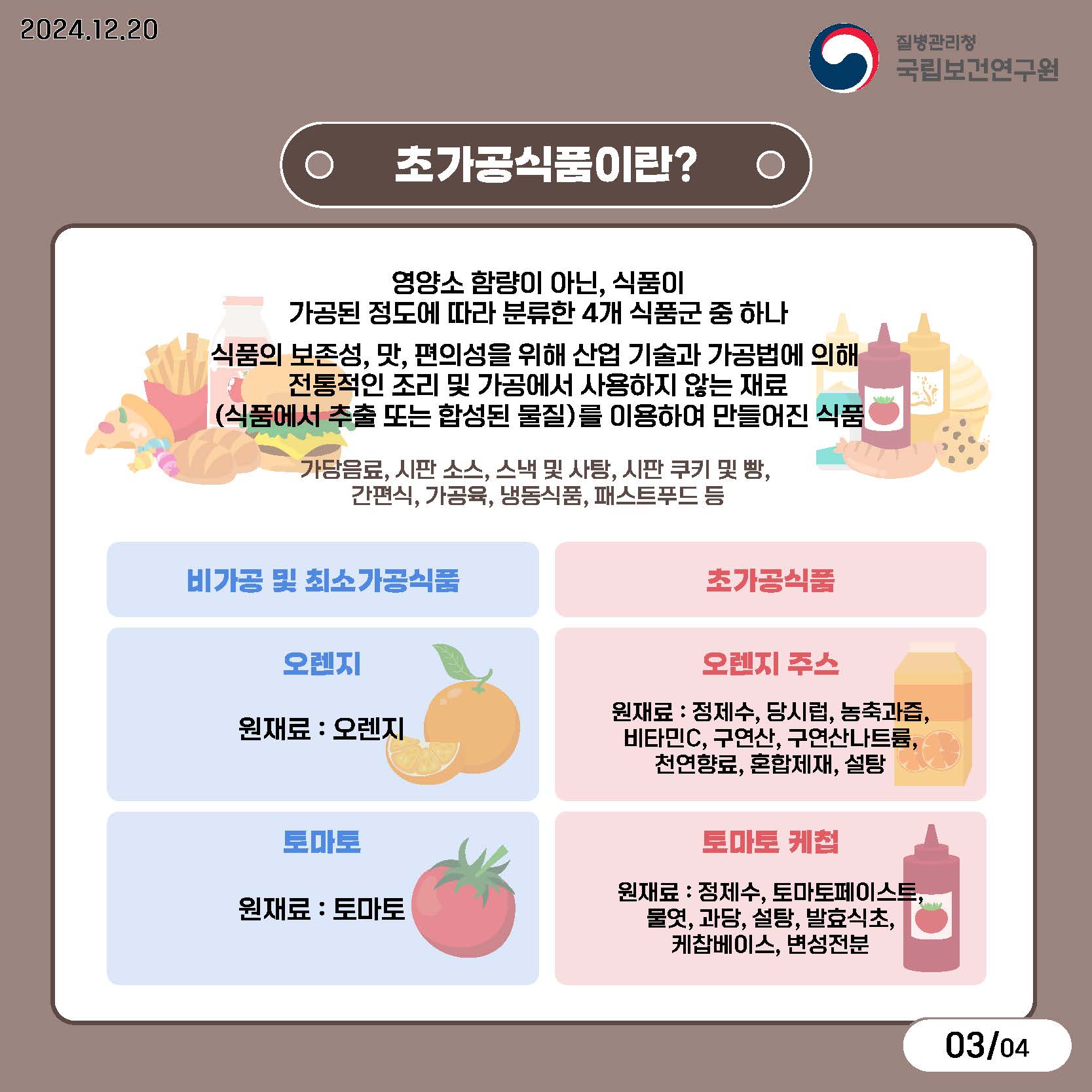 * 초가공식품은 원형을 찾을 수 없을 만큼 물리적, 화학적으로 바뀐 가공식품이라고 생각하면. 그런 과정애 많은 식품첨가물과 조미료와 보존제가 들어가고..