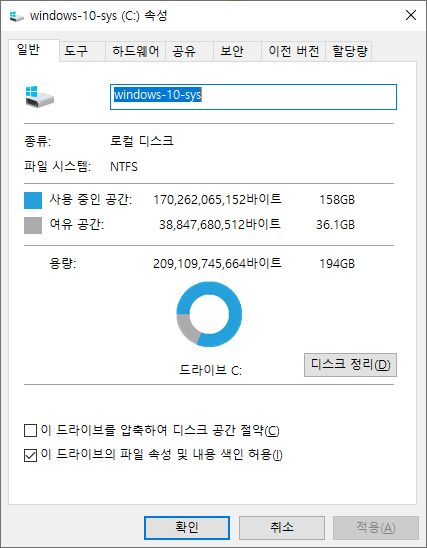 시스템드라이브에 용량이 부족하다는 알림을 보고 뒤져보니 그래도 깔린 게 있어서, 정리 좀 해주고 나니 저 정도. 간당간당하다.