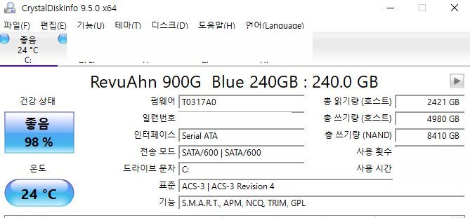 | RevuAhn 900G Blue 240GB SSD 지금 상태 (0) | 2025.11.04 |