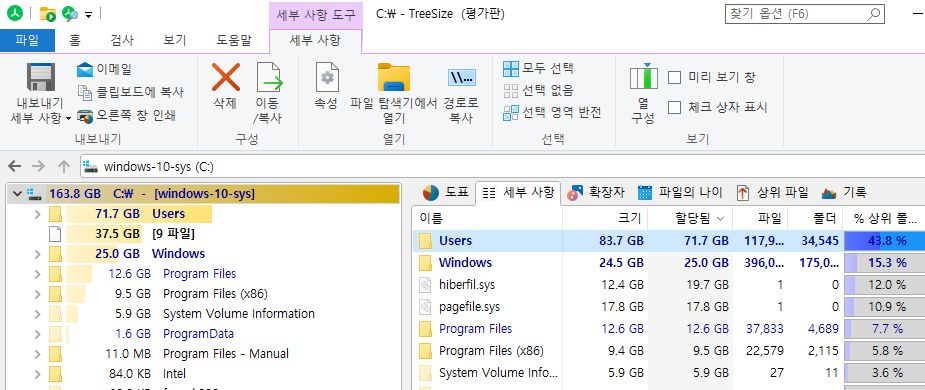 TreeSize, TreeSize Free (MS앱스토어, 윈도우용) 본문