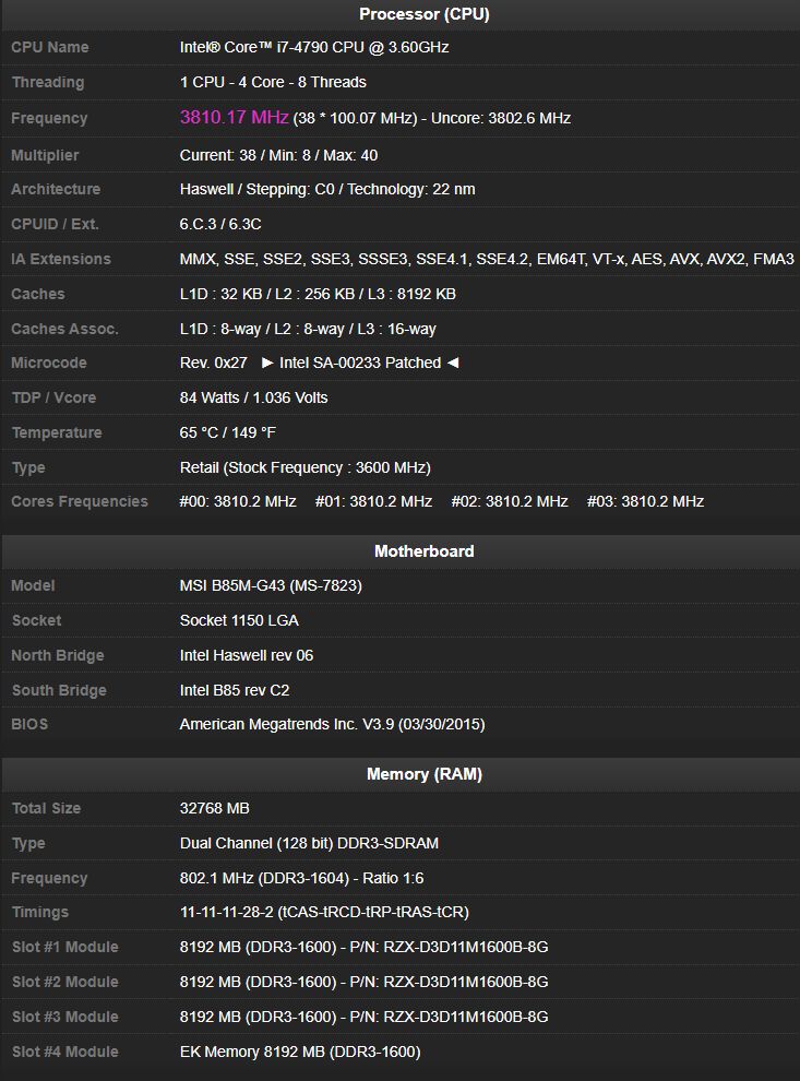 지금 구형 컴퓨터 정보 하나 메모 (i7-4790, 32GB, HD4600) 본문