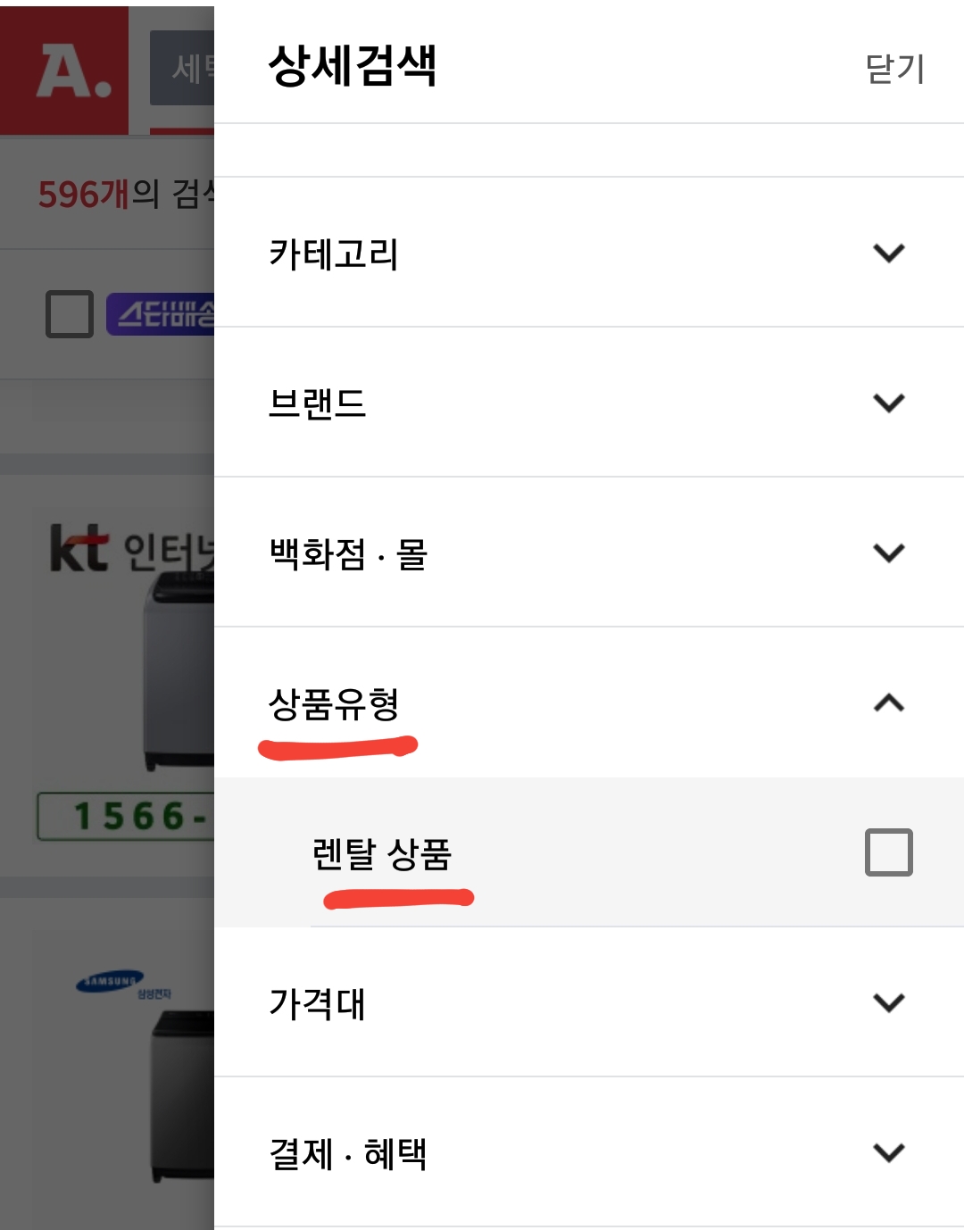 가격순으로 정렬하면, 렌탈을 제외했지만 보입니다.