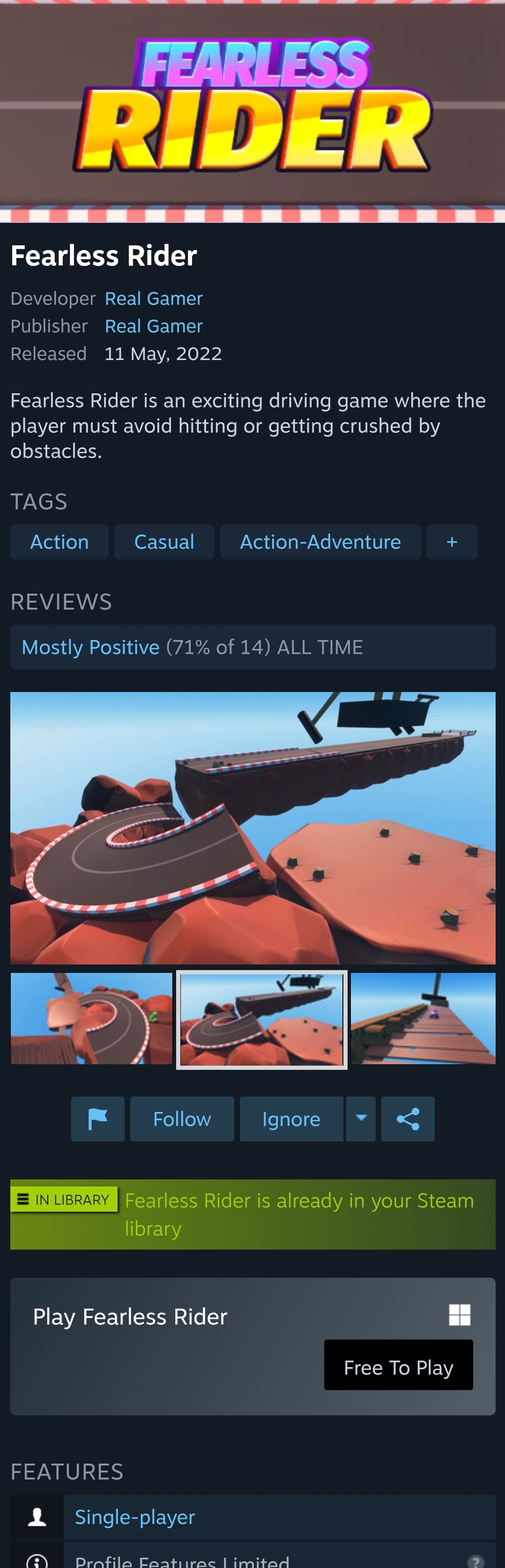 Fearless Rider is an exciting driving game where the player must avoid hitting or getting crushed by obstacles.
