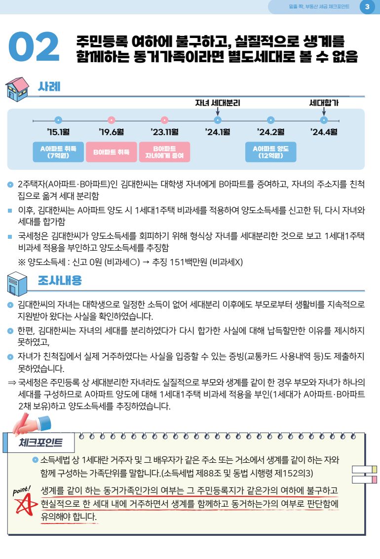 02 주민등록 여하에 불구하고, 실질적으로 생계를 함께하는 동거가족이라면 별도세대로 볼 수 없음