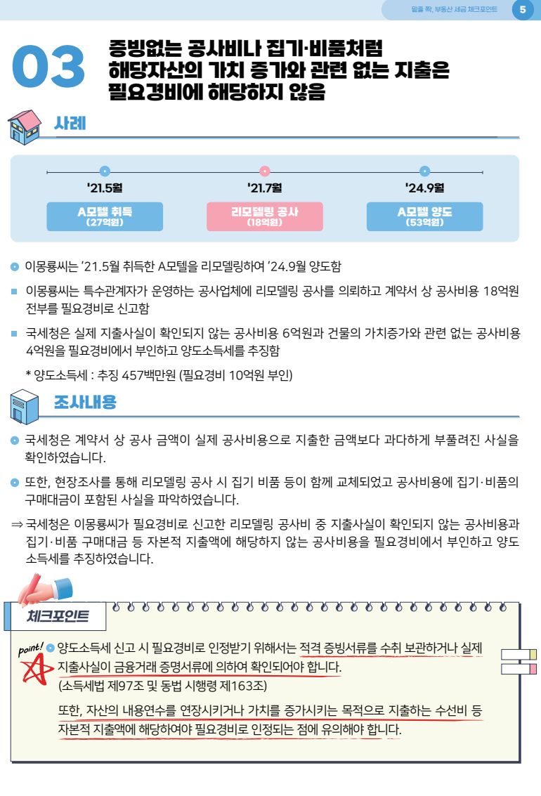 03 증빙없는 공사비나 집기, 비품처럼 해당자산의 가치 증가와 관련없는 지출은 필요경비에 해당하지 않음