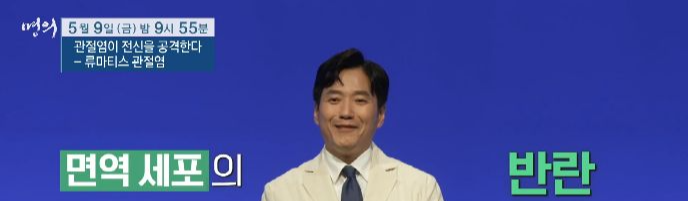 EBS 명의 <관절염이 전신을 공격한다 – 류마티스 관절염> 편에서는 류마티스내과 명의 김완욱 교수, 주지현 교수와 함께 류마티스 관절염에 대해 알아본다.