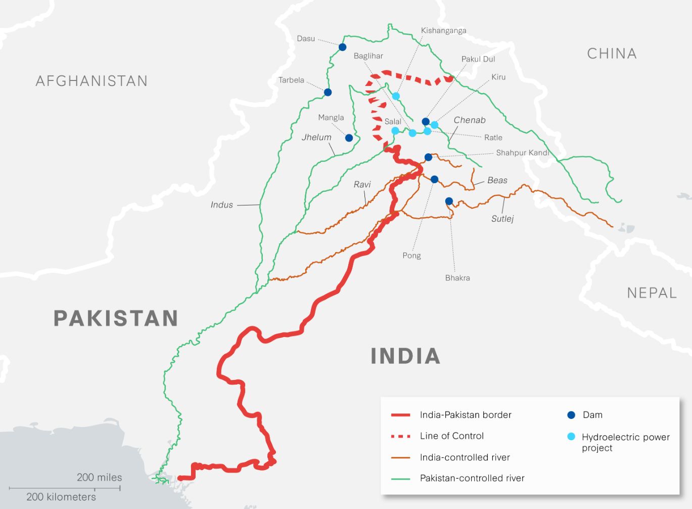 ㅡ 인도는 자국 영토에 건설된 댐을 사용해 자국을 통과하는 하천이 파키스탄으로 흘러가는 것을 완전 차단할 능력이 '현재는' 없다. 물저장능력을 극대화한 댐이 아니라 물을 흘려보내며 상시 발전하는 댐이다.