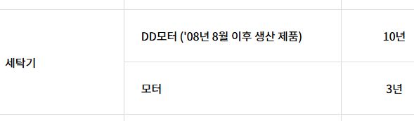 양대 가전회사 세탁기 DD모터(벨트없이 세탁통 직결식인 모터)의 보증기간에 대해 본문