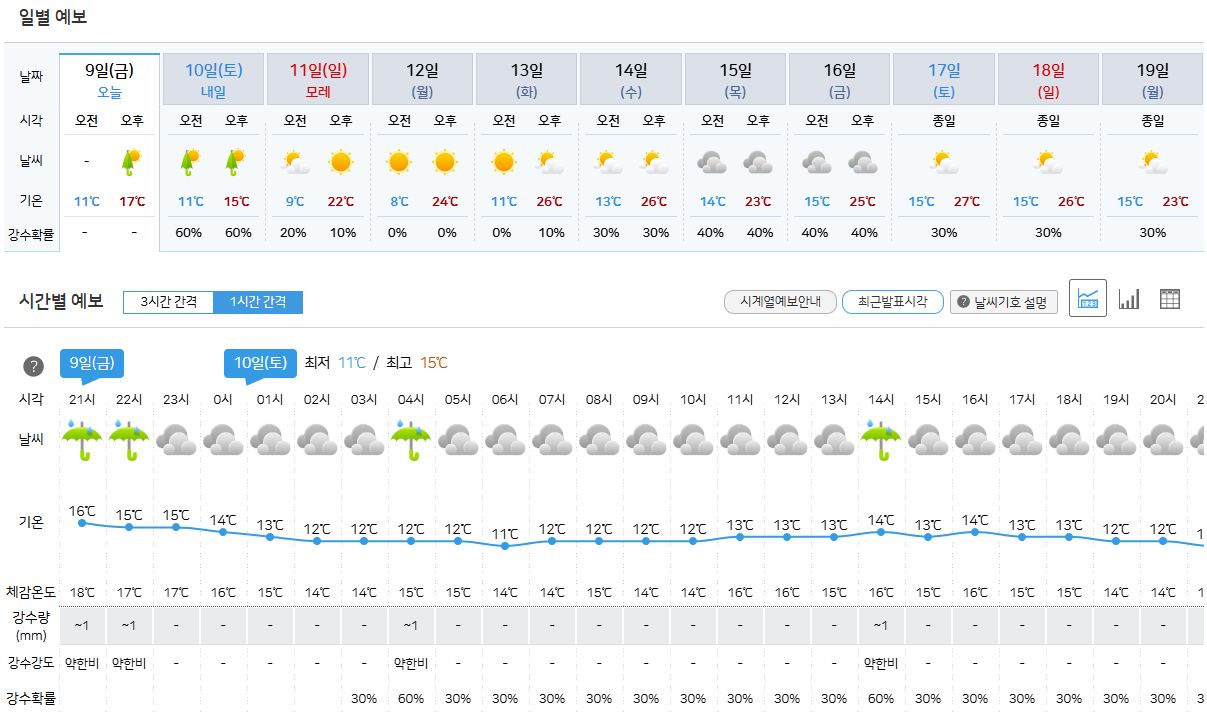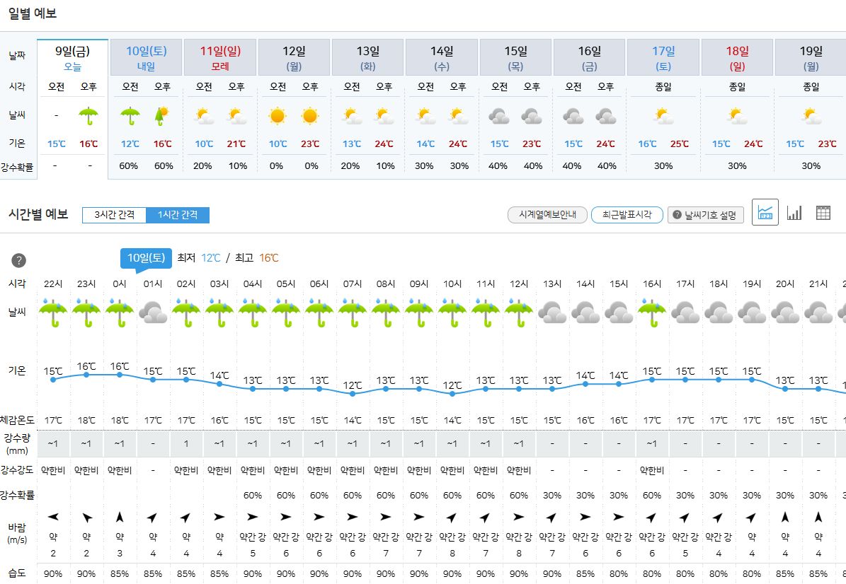 2025.5.10.토요일 날씨: 대전은 빗방울+흐림, 서울은 비 본문