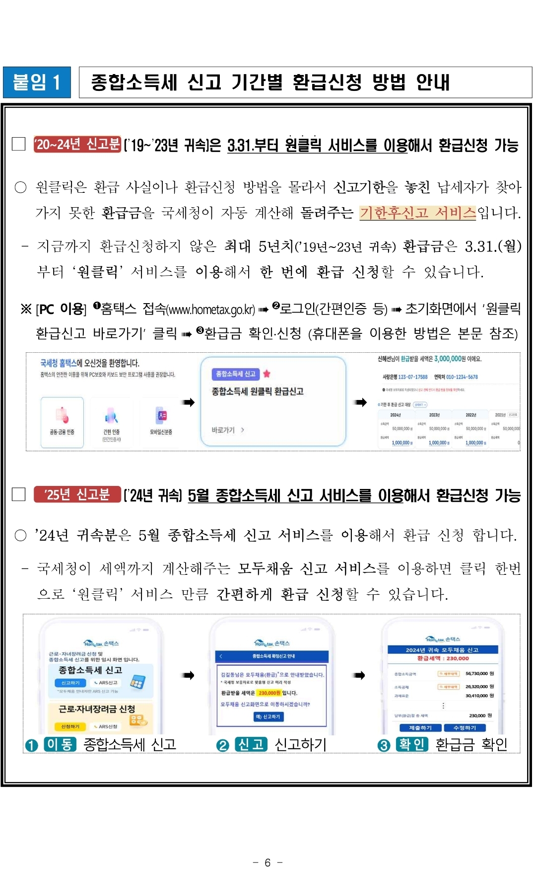 종합소득세, '원클릭'으로 수수료 없이 5년 치 환급 신청! [정책사용설명서]