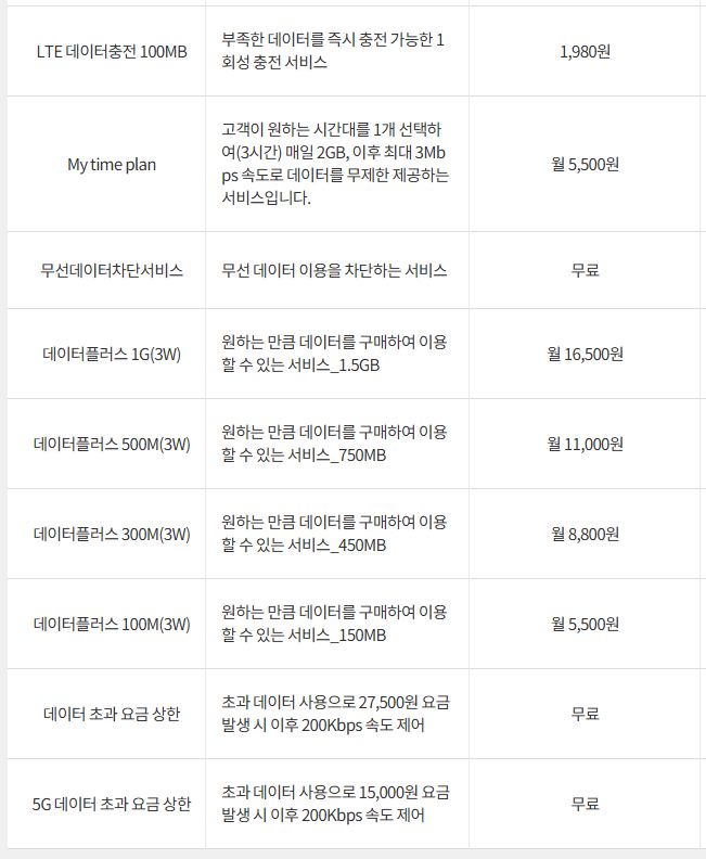KT의 데이터 초과요금 상한 부가서비스 가입불가/:/ KT의 데이터 부가서비스 목록 본문