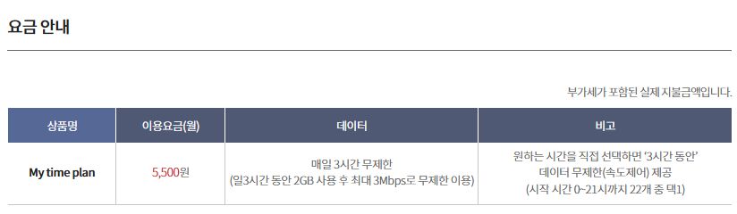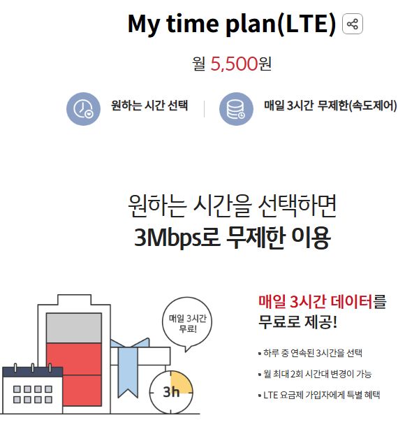 (KT 부가서비스) My time plan(LTE) 월 5,500원 본문