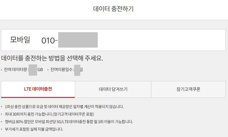 (KT모바일 데이터 충전) LTE 데이터 충전 본문