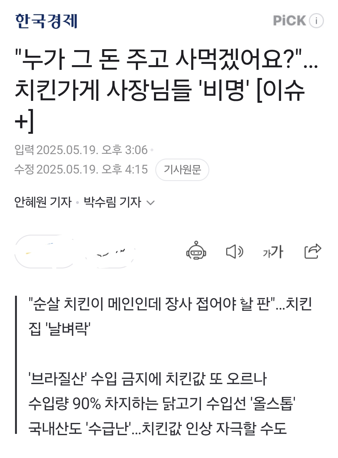 "누가 그 돈 주고 사먹겠어요?"…치킨가게 사장님들 '비명' [이슈+]