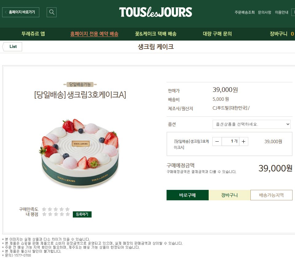 ㅡ 뚜레쥬르를 포함해 베이커리 브랜드는 점포에는 보통 2호까지만 잘 놔두더군요. 3호 이상은 잘 안 보이는 것 같아서, 이렇게 앱에서 예약결제해 픽업예약/배달받거나, 택배상품 중에 결제해야 할 듯.