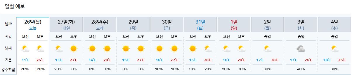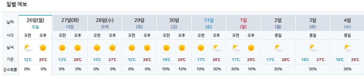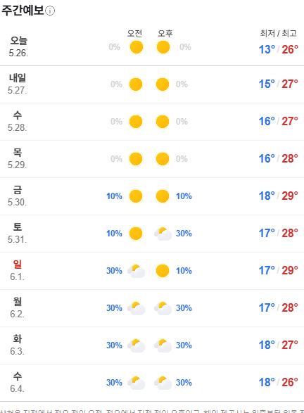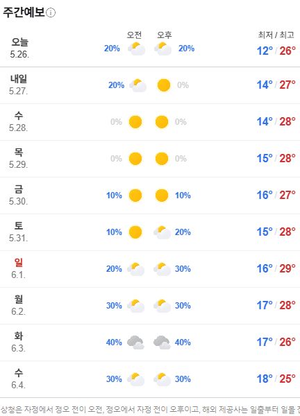 네이버 주간날씨 5.26~6.4