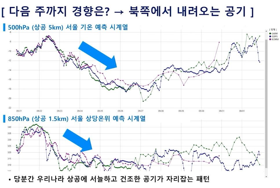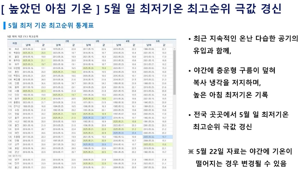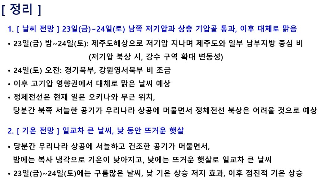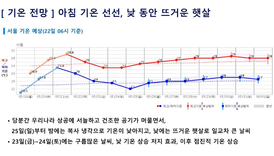 주말까지 습도 낮고 기온도 내려가요! 토요일 비 약간 가능성! (2025년 5월 22일 기상청 예보브리핑)