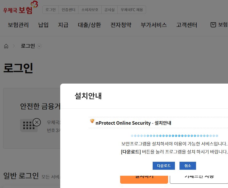우체국보험사이트에서는 엔프로텍트를 깔아야 합니다 본문