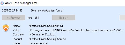 컴퓨터를 켜면 자동실행돼 끌 때까지 메모리에 상주하는 프로세스입니다. 그래서 저는 nprotect를 참 싫어하는데, 이걸 요구하는 데가 있어요. 여기처럼. 어쩔 수 없이 깝니다.