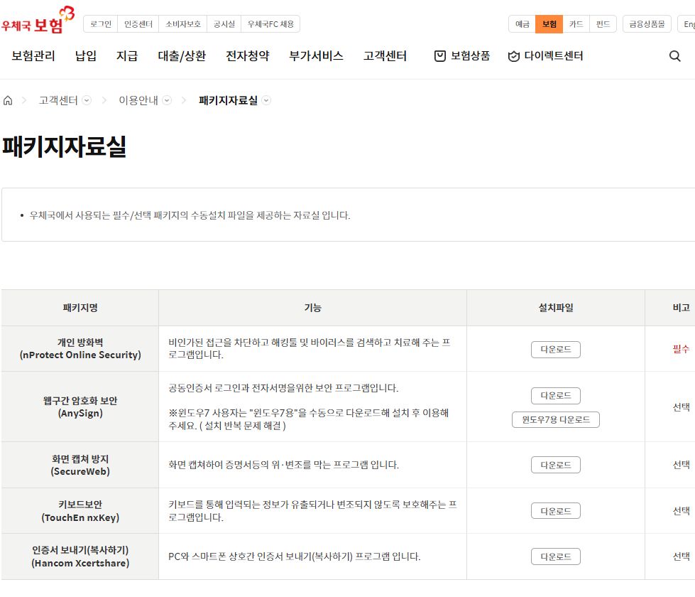 우체국보험사이트에서는 엔프로텍트를 깔아야 합니다 본문