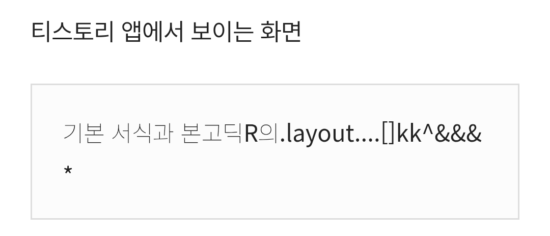 티스토리 앱에서 보는 박스 인용문 서식. 개선희망점 본문