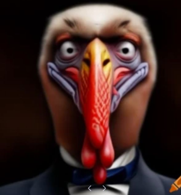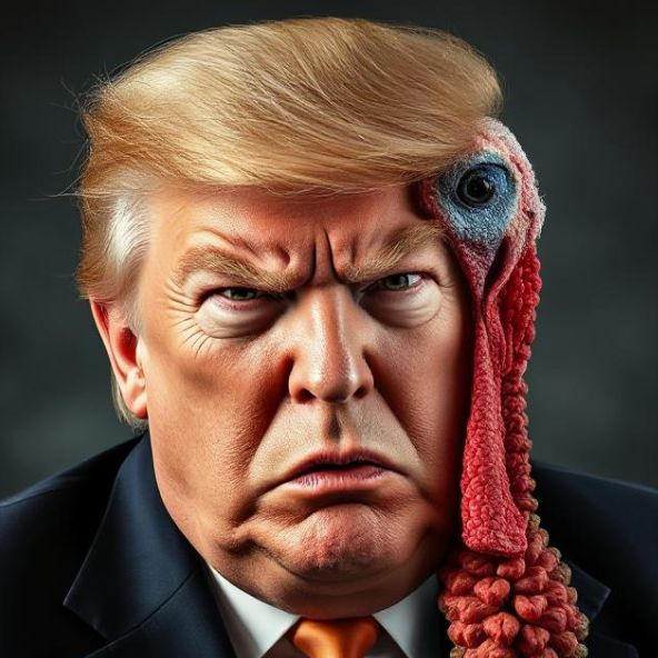 도널드 트럼프의 얼굴과 칠면조 얼굴 (생성 AI 합성) 본문