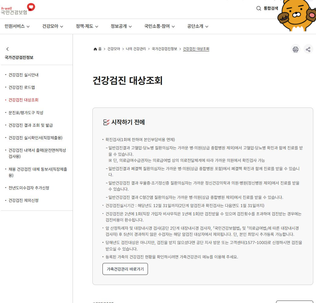 ㅡ 매년 통보가 오지만, 모르겠으면 여기서 올해 내가 무슨 검진 대상인지를 확인할 수 있습니다.