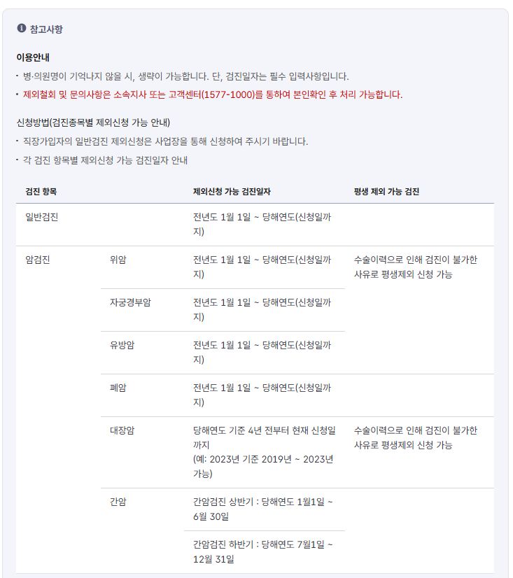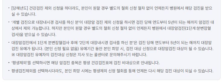 그 외, 만약 어떤 장기를 절제한 사람이라면 그 장기에 관한 암검진은 받을 이유가 없겠죠. 평생제외 수술이력이 있는 경우.