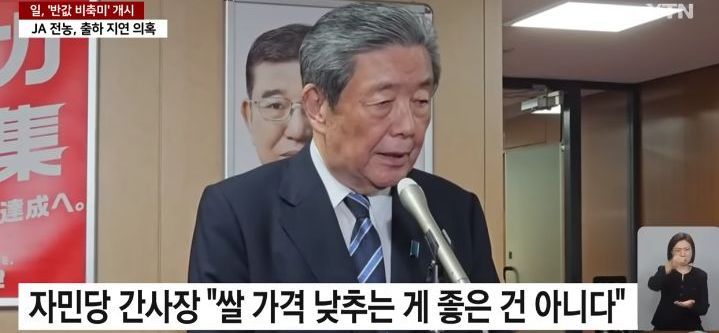 이시바 시게루 내각은 지난 3월에도 비축미를 대량 방출했지만 즉각적인 가격 하락 효과는 없었다. 이를 두고 방출된 비축미 대부분을 낙찰받은 전국농업협동조합연합회(JA전농)가 의도적으로 파동 사태를 방치하고 있다는 의혹이 나왔다.
