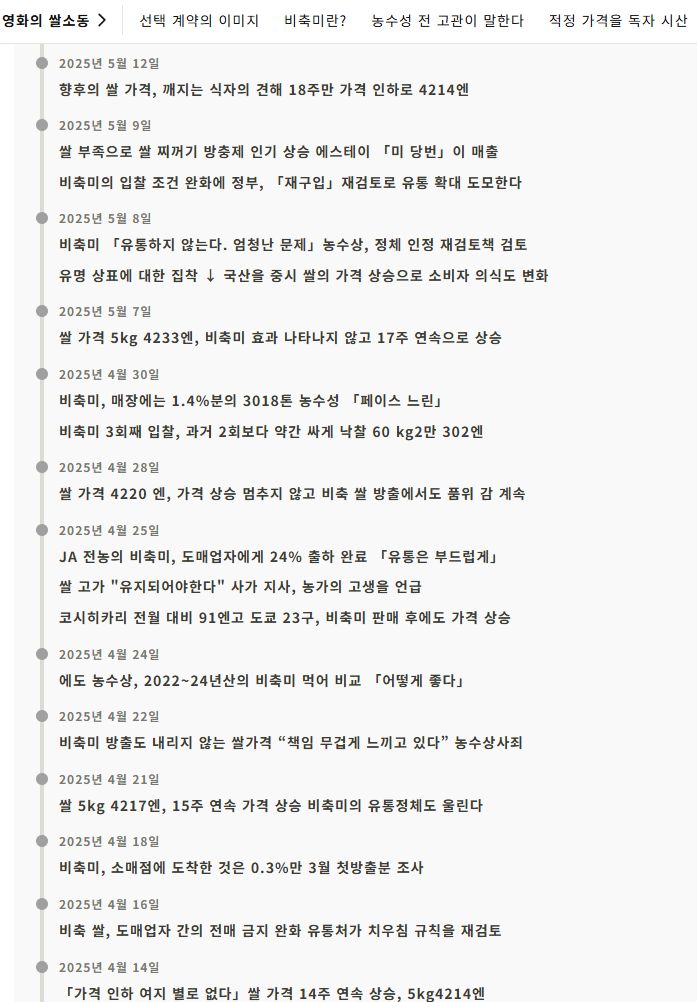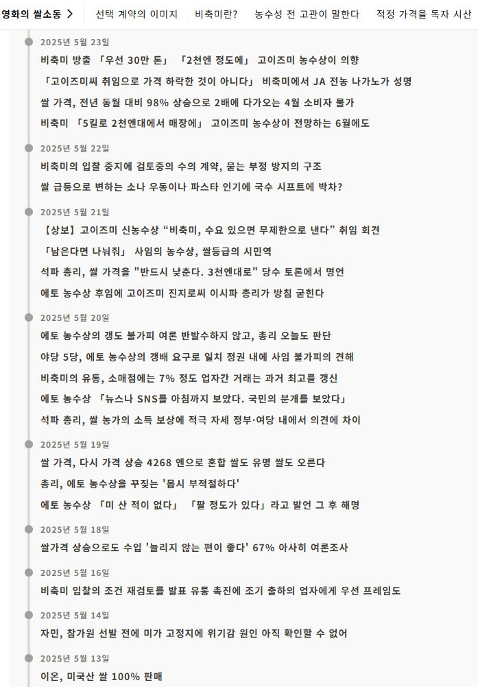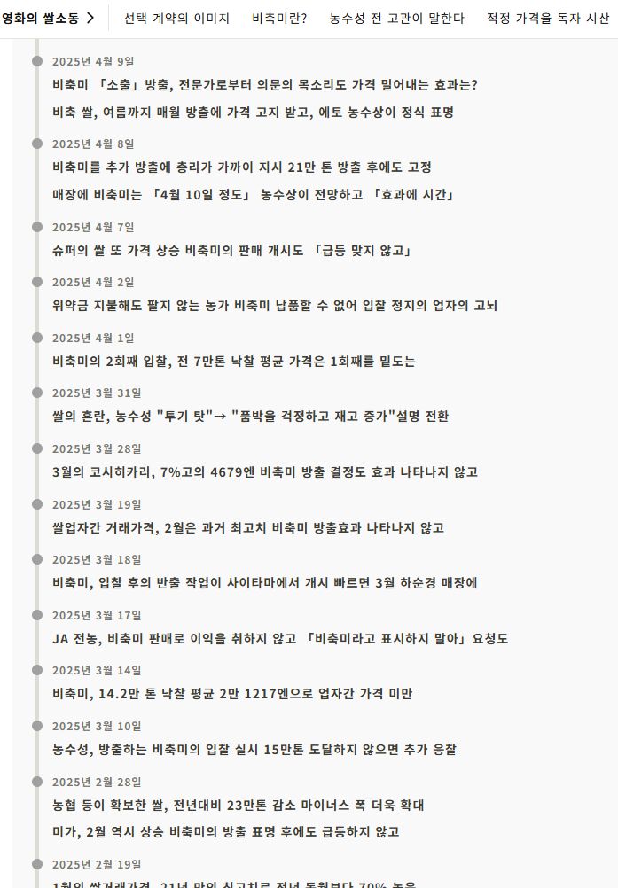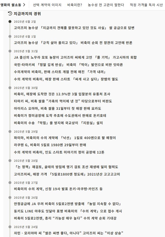 그리고 이날 고이즈미가 수의계약으로 방출한 비축미가 시중에서 판매되기 시작한 것이다. - 조선일보 2025.5.31