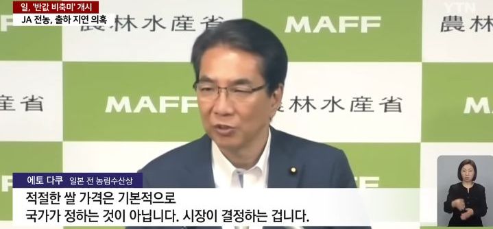 (JA전농은 십 년 전에 기업화되었고 그래서 유사시를 대비한 유통능력 보유보다는 효율적인 경영을 추구하며 벼의 가공 유통능력이 확 줄어들었던 모양. 하지만 여전히 거의 독점적으로 정부방출미를 유통하는 관행을 유지한 듯. 그러다 최근 몇 년 작황이 안 좋아 살짝 유통량이 줄면서 쌀소비는 살짝 늘어 전체적인 수요공급 미스매치가 생겼는데, 이것이 제때 완충되지 못하면서 쌀값이 올랐고2, 정부미를 방출해도 그간 효율경영하려고 축소한 JA전농이 빨리 공급하지 못해 소매가는 안정되지 않고 더 올랐다.3 그리고 이 상황에서 JA전농은 (처리시설을 늘려봐야 시간지나면 또 놀려야 하니 그것보단) 손해본 만큼은 이참에 벌충해야겠다는 느긋한 태도, 내각 주무장관과 자민당 농업족 정치인들은 시간이 해결해 줄 거라는 태도, JA전농을 통하지 않고 생산자 직거래로 평소보다 비싸게 쌀구한 다른 유통업체들도 올라버린 시가에 마춰 소매. 여기서 민심 폭발, 장관 교체, JA전농이 아닌 다른 민간 대형유통업체로도 정부가 비축미를 직접 출고, 유통 쌀값상승세가 진정되기 시작.. 이렇게 이야기가 간 듯)