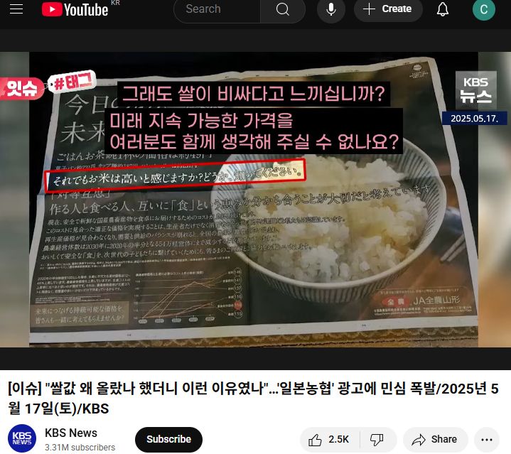 [이슈] "쌀값 왜 올랐나 했더니 이런 이유였나"…'일본농협' 광고에 민심 폭발/2025년 5월 17일(토)/KBS