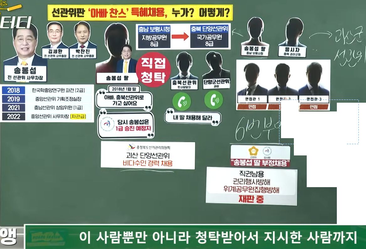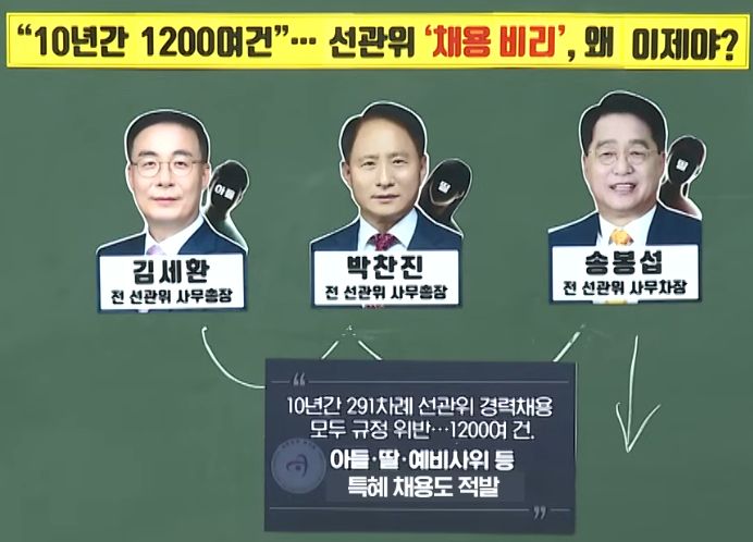 저 둘이 차례로 해먹은 선관위 사무차장 자리를 물려받은 송봉섭딸 채용비리