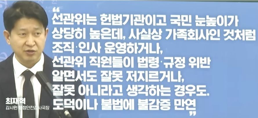서울선관위 인사과장이 그런 범죄를 저지르고는 선관위 자체감사에 걸렸고, 감사원에도 걸려서 잡힘.