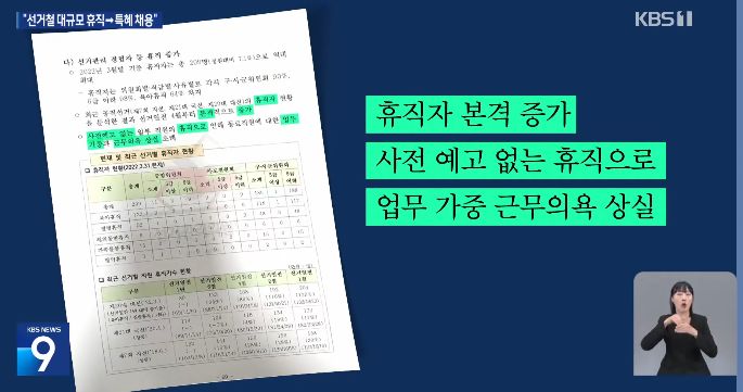선거철 휴직 메우기·경력 채용에 ‘아빠 찬스’ [9시 뉴스] / KBS 2024.04.30.