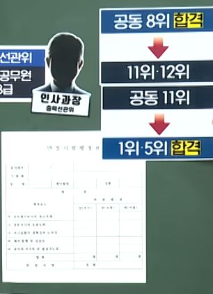 여기에 더해 면접시험 조작. 외부위원들에게 평점표를 연필로 쓰라고 한 다음 그 표를 조작, 최종 순위를 조작해 내정자를 합격시킴. 이걸 인사담당자가 주도.