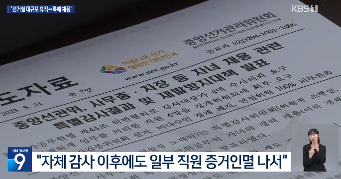 선관위 직원들은 업무가 많아지는 선거철에 대거 휴직을 했고, 이 빈자리는 직원 자녀들로 채워졌습니다. 감사원이 감사하겠다고 하자 선관위는 헌법기관임을 내세우면서 저항했었는데 그러면서 내부적으로는 비리 자료 폐기와 증거 인멸이 일어났습니다. - KBS 2024.
