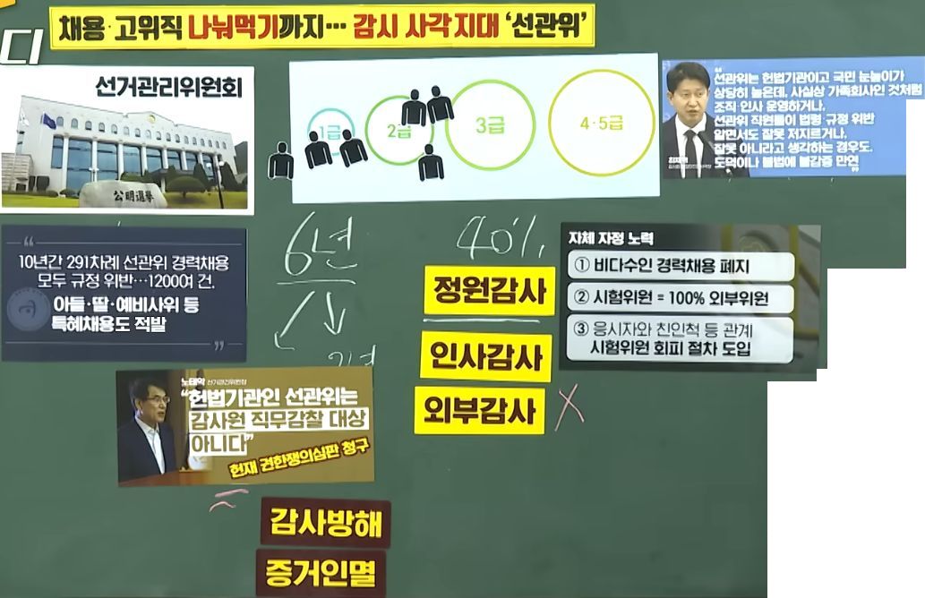 선관위 채용비리, 아빠가 휴직하면 아들을 고용, 회전문 인사, 비닐백투표 등 최근 수 년 간의, 감사를 거부하는 선관위 문제