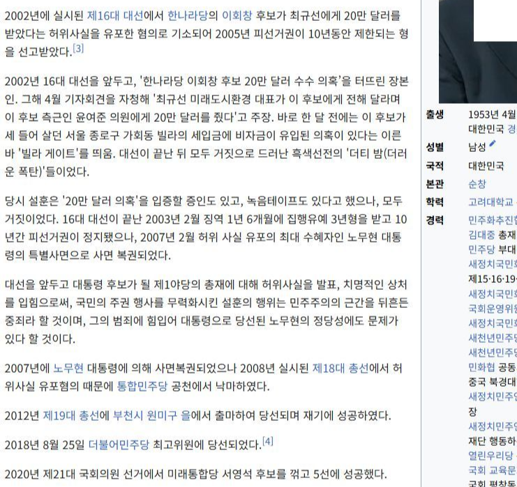 설훈은 그 후로 정치인 생활을 계속할 수 있었죠.1