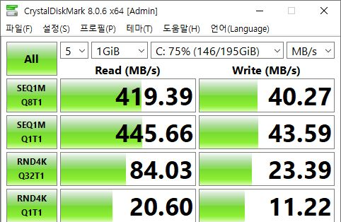 뭐. . 그래도 어쨌든 벤치를 하기 전에는 크게 느끼진 못했다. 내가 그만큼 가벼운 용도로 쓰고 있어서일 테고, 대용량 다운로드할 일도 별로 없어서겠지.