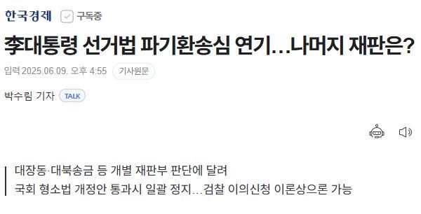 이번 결정 이후 이 대통령의 다른 사건을 심리하는 재판부들 역시 유사한 결정을 내릴지 주목된다.