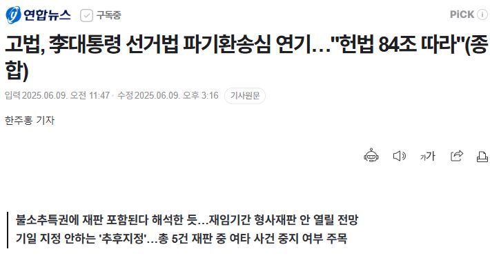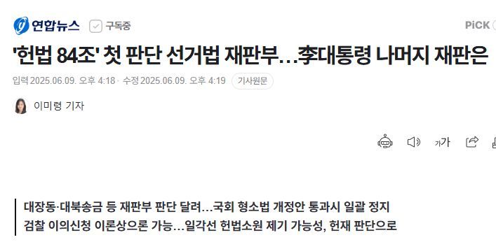 ㅡ 선거법 파기환송심 2심은 대선 기간 이 대통령의 사법 리스크를 둘러싸고 빚어진 헌법 84조 해석 논란에 대해 가장 먼저 개별 재판부 판단을 내놓았다.